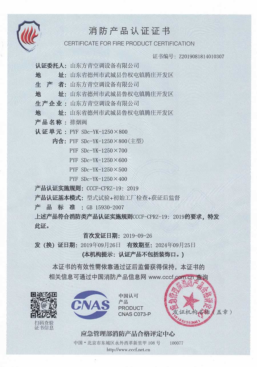 YK排煙(yān)閥3C證書1250x800